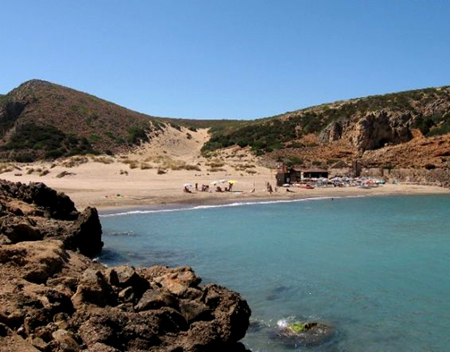 La Caletta, accessibile attraverso una galleria scavata dai minatori, rivela una piccola spiaggia ben riparata dai venti settentrionali. Di fronte, nella penisola calcarea e spoglia sorge una torre spagnola, che domina tutta la costa.