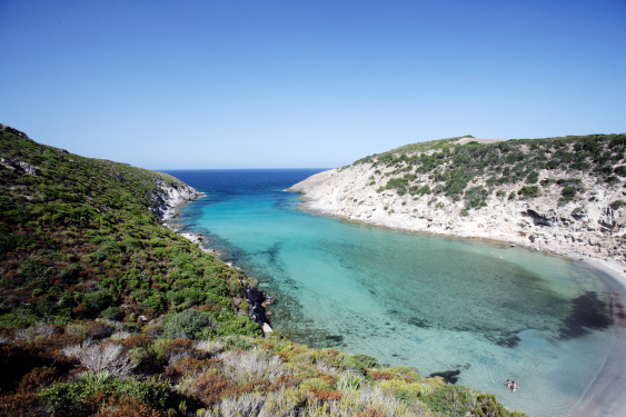 L’ isola è collegata da un ponte e offre al suo interno paesaggi selvaggi e spiagge bellissime come Maladroxia, Coaquaddus, Cala Lunga, Cala Sapone.